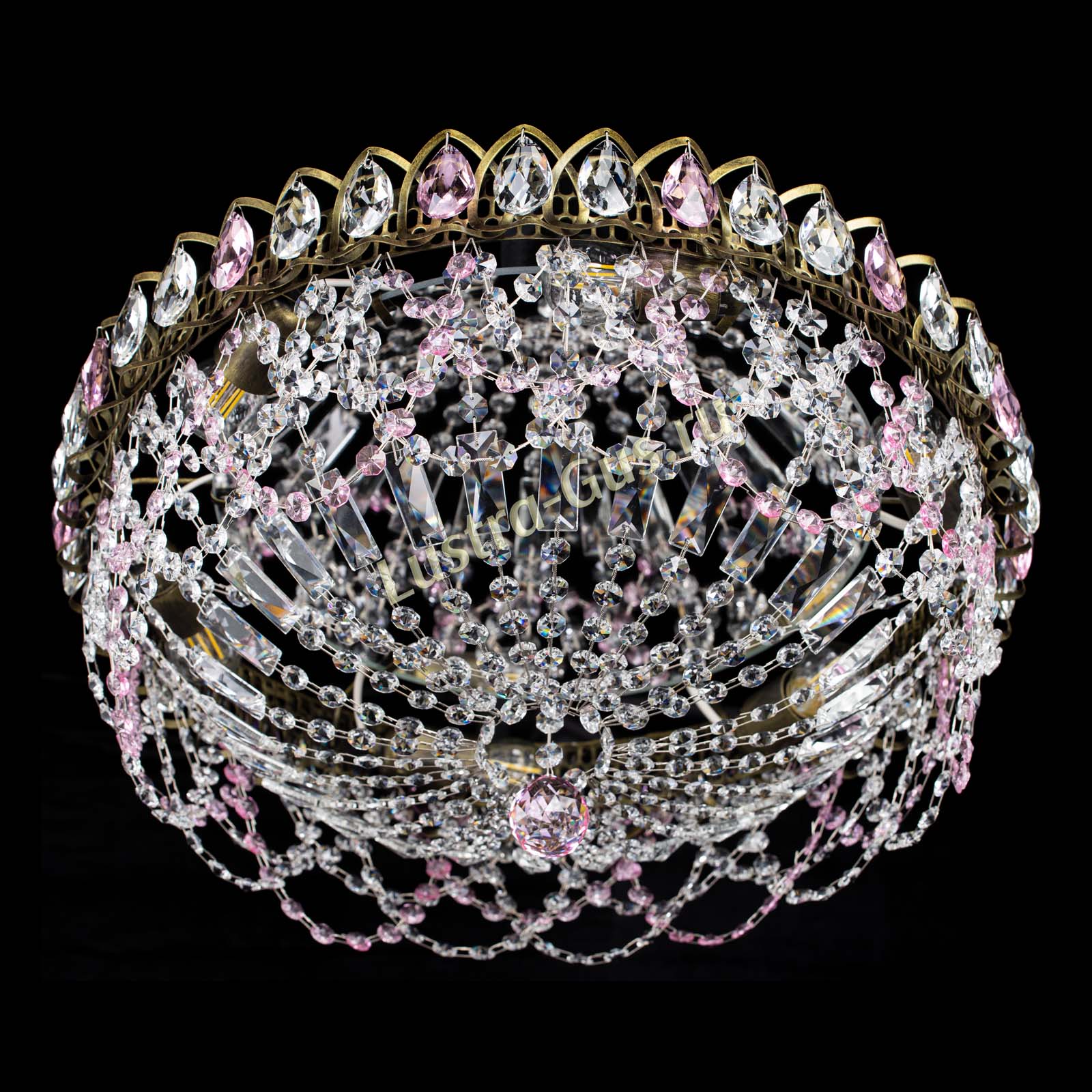 Люстра Хрустальный Каскад Ажур под бронзу Розовая в Подольске