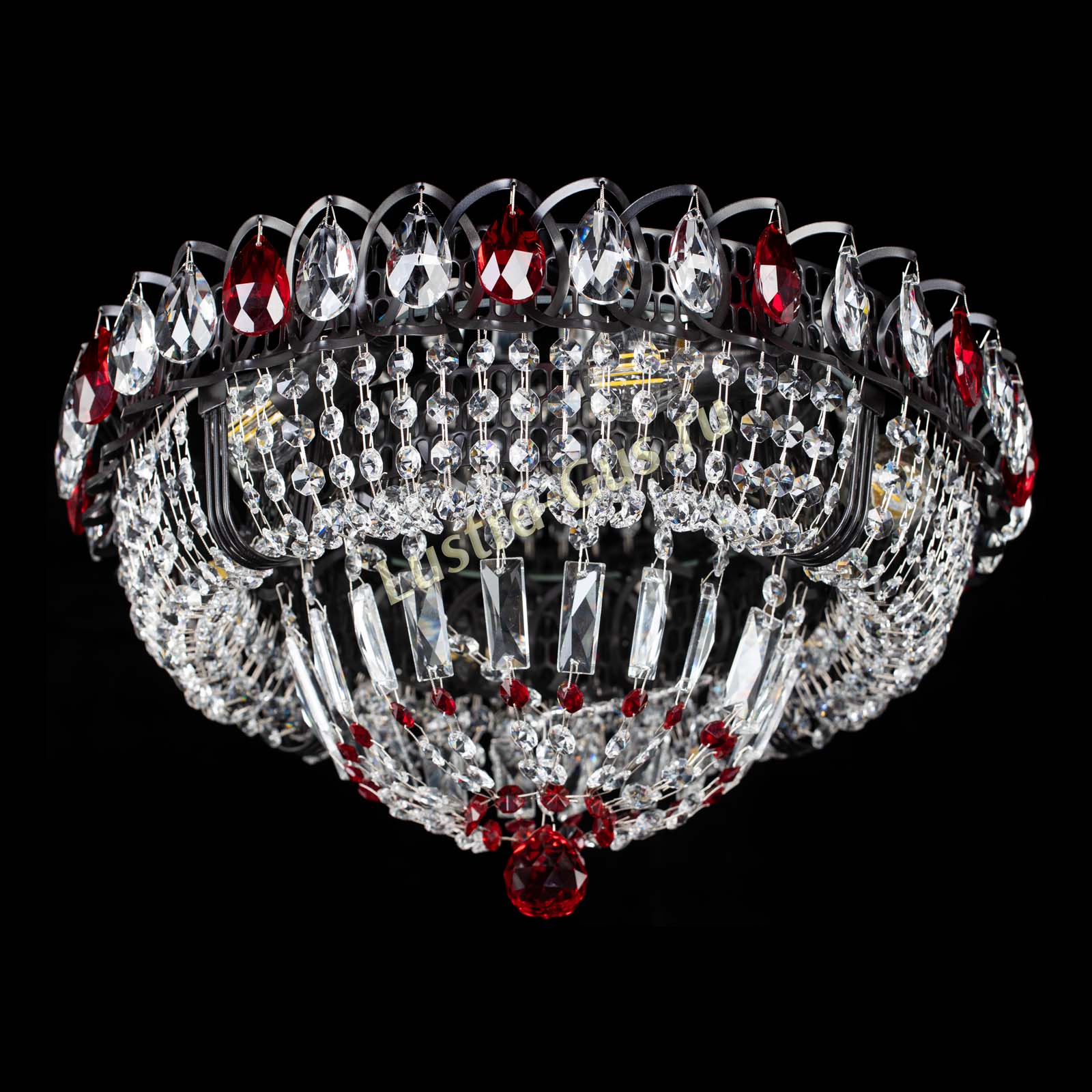 Люстра Кольцо Классика Черная с красными подвесками в Подольске